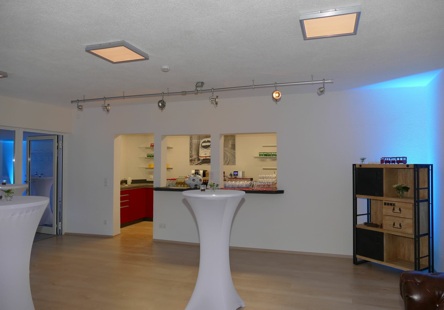 Mit der Saaltür in DB-rot und der Eisenbahnsymbolik an beiden Seiten wird schon beim Betreten der Galerie87 klar, dass hier etwas Besonderes entstanden ist.