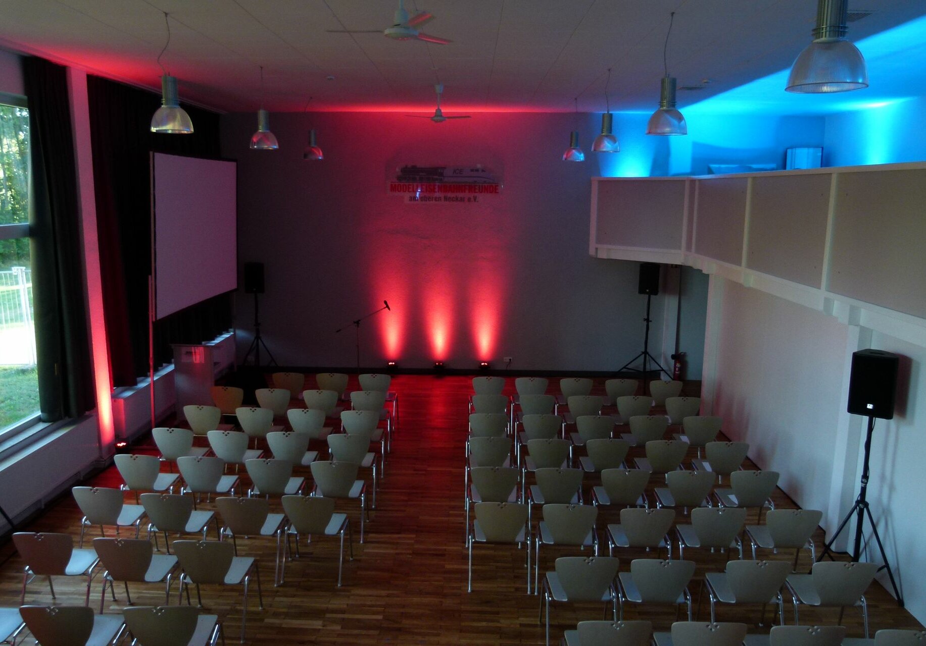 Hier wird auch unsere Modellbahnanlage entstehen. Aber allein schon durch die Nutzung für die Eröffnungs-Vorträge wurde klar, dass wir versuchen werden, uns verschiedenste Nutzungsmöglichkeiten für den Saal oofen zu halten. Er soll somit nicht nur für die Modellbahn, sondern auch für Veranstaltungen nutzbar sein.