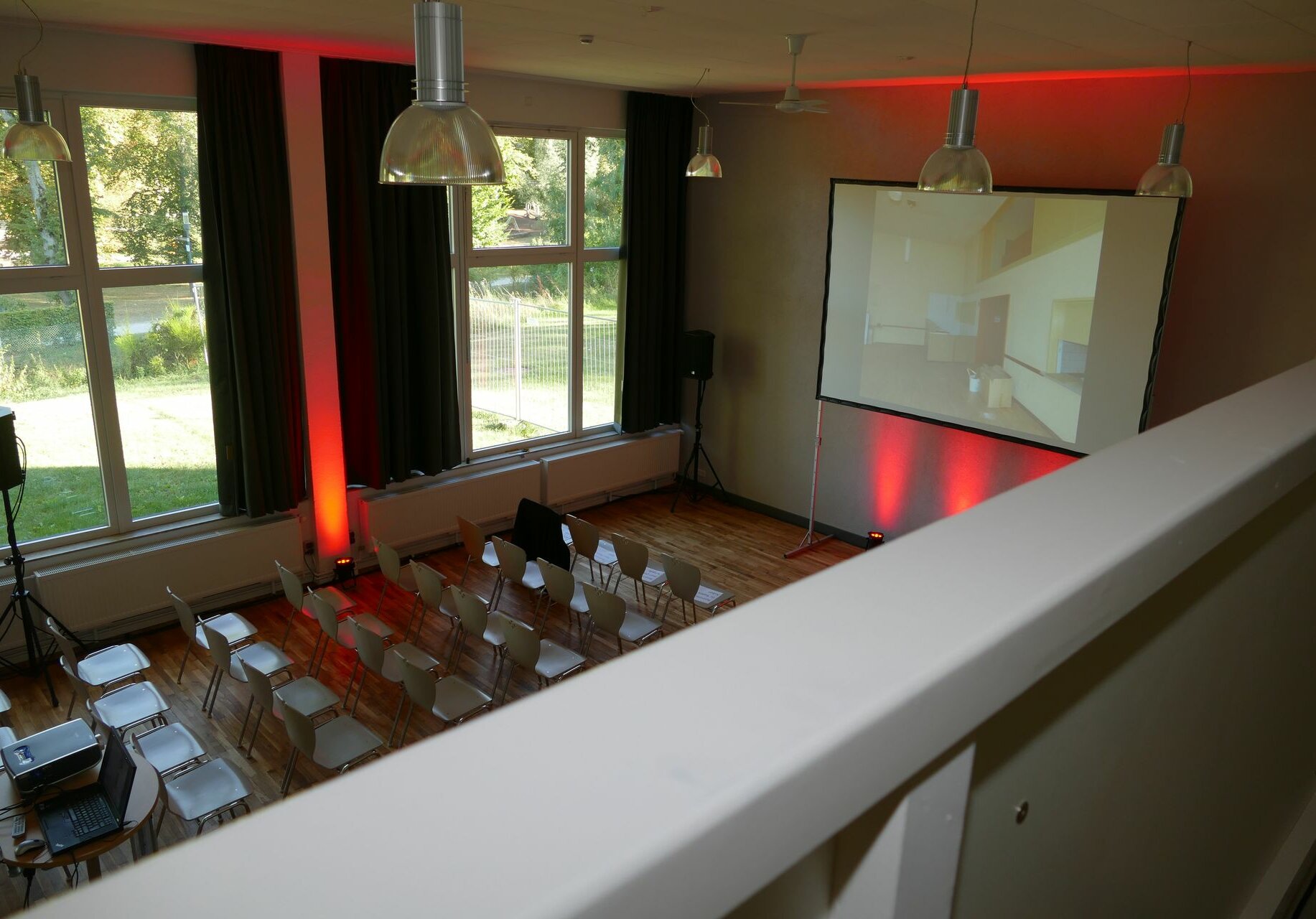 Von der Galerie ergeben sich ganz neue Eindrücke vom Saal. Dadurch ergeben sich verschiedenste Ideen für die künftige Nutzung unserer neuen Räumlichkeiten.